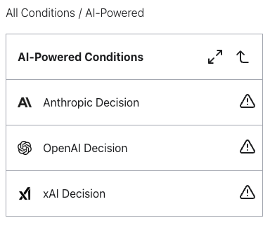 - Conditions - AI Decisions or Custom Conditions can utilize AI.